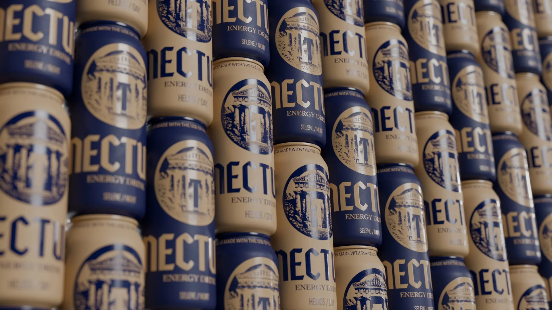 Conceptual energy drink Nectur, a caffeine-free, neurotropic-based energy drink for night and day. Modelled and rendered in Blender.